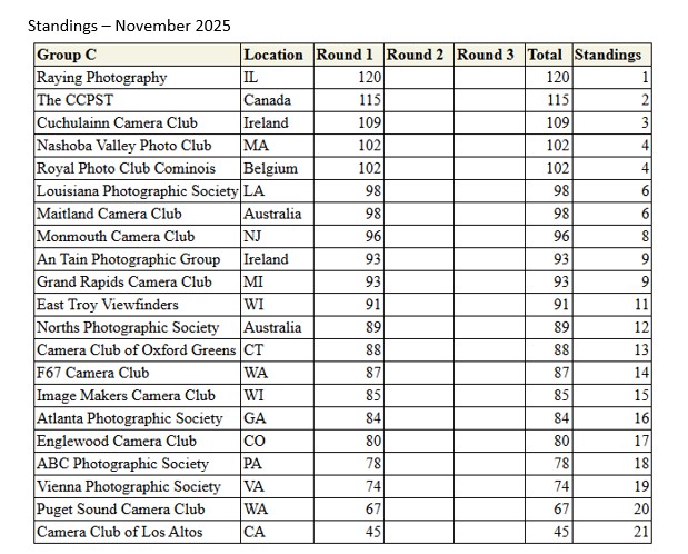 Results: PSA Colour Interclub November 2025 Round 1